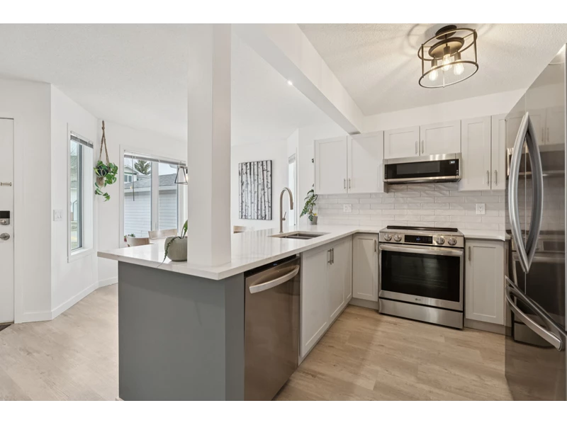 seamlessly. From the moment you arrive, the pride of ownership is evident—this is a home that truly shines. Step inside to discover a bright and inviting main level, featuring durable Luxury Vinyl flooring that flows effortlessly throughout both the main and upper floors, creating a cohesive and modern feel. The living room offers a warm and welcoming atmosphere, centered around a cozy gas fireplace—perfect for relaxing evenings or hosting guests. The upgraded appliances and stylish light fixtures elevate the space, adding a touch of contemporary elegance to everyday living. Upstairs, you’ll find three well-appointed bedrooms, including a spacious primary retreat complete with a walk-in closet and a private 3-piece ensuite. An additional 4-piece bathroom ensures comfort and functionality for family or guests alike. The fully finished basement expands your living space with a massive rec room—ideal for movie nights, a home gym, or a play area—along with a dedicated laundry room and plenty of storage. An attached single garage adds everyday convenience, while the unbeatable location puts you just minutes from Crowfoot Crossing, the LRT station, shopping, restaurants, and more. NEW FURNACE AND HOT WATER TANK! A fantastic opportunity to own a move-in ready home in a prime location— don’t miss it!