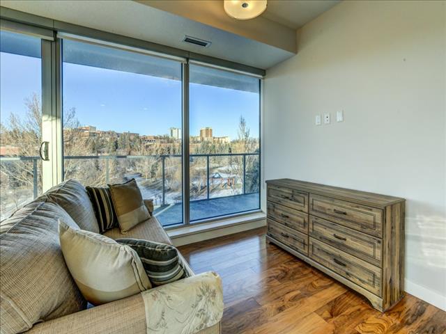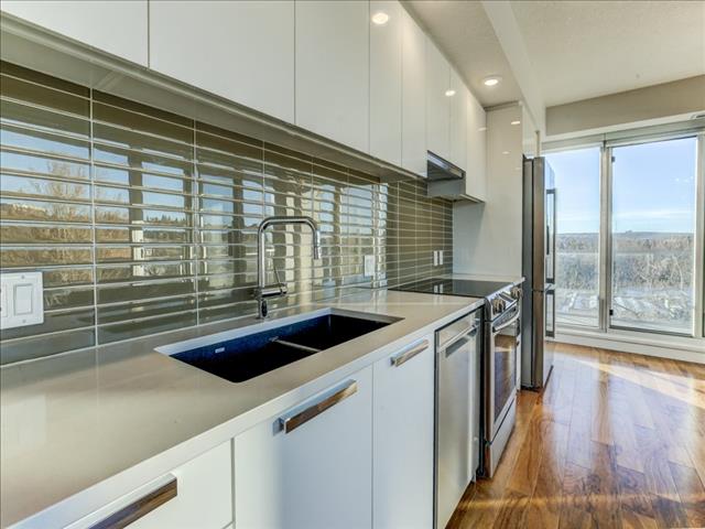 This gorgeous, almost new, 6th floor, 2 bedroom, 2 bathroom condo has it all. This luxury unit comes with wall to wall panoramic views from almost every angle (West/NW/North), massive wrap around deck (including overlooking Riley Park), and a sleek modern design. Hardwood floors, white quartz counters and stainless steal appliances are just a few bonuses this unit has to offer. Truly an entertaining space. Master bedroom has an ensuite with beautifully tiled shower and walk in closet. On the other side of the unit you will find the second bedroom with floor to ceiling windows overlooking Riley park, with a second full bathroom, and in suite laundry. Building also offers a gym/fitness room, wine/entertainment room, bike cage, convenient guest suite , storage locker, and titled parking. Located close to Kensington, downtown, and LRT If your looking for stylish living while still close to it all Ezra is here and waiting. This condo must be viewed for full appreciation, as the views will leave you speechless.