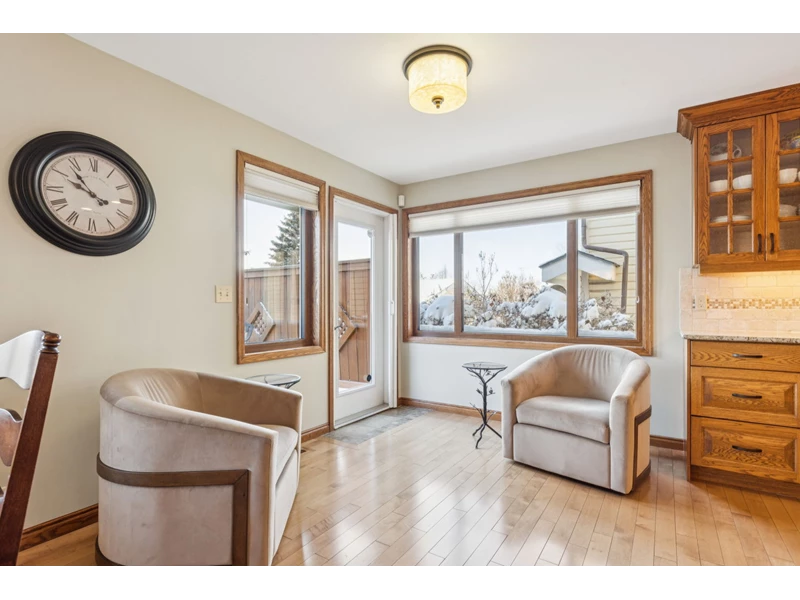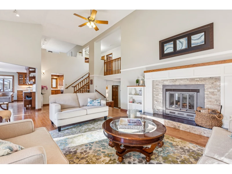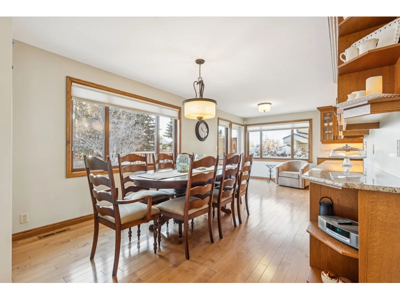 walkable location come together beautifully. Lovingly maintained and upgraded, this one-of-a-kind property has been the setting for raising a family, hosting gatherings, and building lifelong friendships. Nestled on a close-knit street known for its island park BBQs and welcoming neighbors, this established community offers the perfect blend of families and empty nesters in a warm, small-town atmosphere. Inside, the unique open-concept design seamlessly connects the living room, dining area, and kitchen—an ideal layout for entertaining. Rich hardwood flooring runs throughout the main level, complemented by quality solid-wood craftsmanship including custom kitchen cabinetry, interior doors, and stunning wood paneling and shelving in the front den. Two nostalgic wood-burning fireplaces in the front den and living room create inviting spaces to relax and unwind. The sun filled kitchen offers generous counter space for the home chef, while the renovated master bathroom, updated kitchen, and refreshed laundry room reflect true pride of ownership. The fully developed basement expands your living space with a spacious TV/entertainment area, two additional rooms perfect for bedrooms or a home office, and substantial storage in the sub-basement. TWO HIGH EFFICIENCY FURNACES provide efficient comfort— one serving the basement and main floor, and a second dedicated to the upstairs bedrooms and loft. Major upgrades add tremendous value and peace of mind. LUXURY TRIPLE PANE European windows with oak casings and trim were installed in September 2024. The home has been re-roofed with newer shingles, original gutters have been replaced, and a special stucco weather coating enhances durability and protection. Outside, mature landscaping creates exceptional privacy in both the front and backyard. Enjoy brick walkways, gardens, hedges, and two generously sized back decks and patio areas—perfect for summer evenings. Trees were professionally pruned in spring 2025. The oversized 24’ x 24’ detached two-car garage features extra bright lighting, along with a brand-new garage door and opener installed in spring 2025. The location is simply outstanding. Walk to downtown Cochrane’s main amenities including the library, grocery store, pharmacy, medical and dental offices, playgrounds, parks, and the scenic creek and Bow River pathways. It’s also an easy walk to the elementary school and offers quick access to Calgary for commuting or shopping. Weekend escapes to Kananaskis, Canmore, and Banff are just a short scenic drive away, with mountain views to inspire you daily. This is more than a home—it’s a rare opportunity to own a beautifully maintained property in one of Cochrane’s most established and cherished neighborhoods.